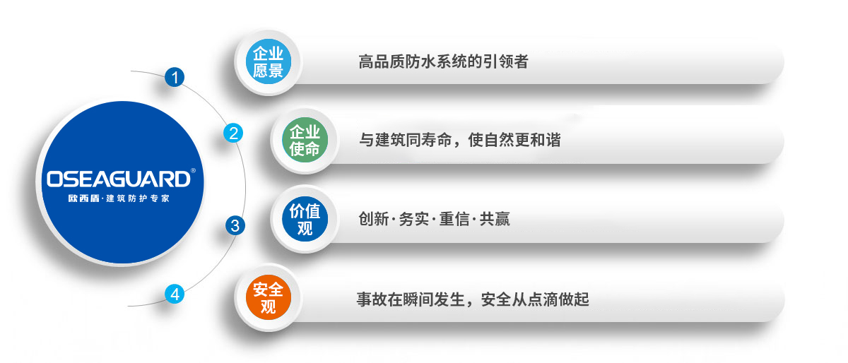 十余年來,公司在為重大基礎(chǔ)設(shè)施建設(shè)、工業(yè)建筑和民用、商用建筑提供高品質(zhì)防水系統(tǒng)解決方案的同時,自身也成長為了一家全方位的防水系統(tǒng)服務(wù)商,旗下?lián)碛?歐西盾"、 "歐西建科"、 "OseaGuard"等眾多品牌,產(chǎn)品涵蓋防水卷材、防水涂料、保溫材料、防腐材料、綠化材料等業(yè)務(wù)板塊。公司規(guī)模也在不斷擴大,在淮安擁有兩個生產(chǎn)基地和一個施工企業(yè)。
