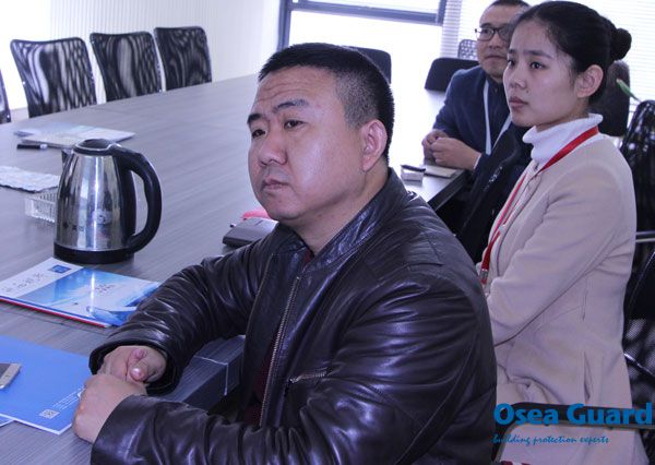 2016年3月7日上午,海南省防水協(xié)會會長孫慶生、常務(wù)副會長孫彥濤、江蘇鹽城市康泰建筑灌漿技術(shù)有限公司高工陳森森考察團一行蒞臨歐西建科南京總部進行參觀考察,歐西建科王洪波總經(jīng)理、郭紅副總經(jīng)理進行了熱情接待并陪同座談。