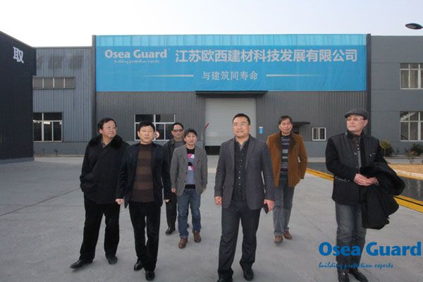 2015年1月23日,江蘇省建筑防水協(xié)會領(lǐng)導(dǎo)一行蒞臨歐西洪澤生產(chǎn)基地參觀考察。