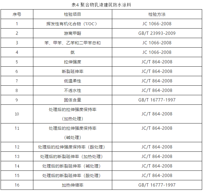 3 判定規(guī)則 3.1依據(jù)標準 GB/T 19250-2013 聚氨酯防水涂料 GB/T 23445-2009 聚合物水泥防水涂料 JC/T 408-2005 水乳型瀝青防水涂料 JC/T 864-2008 聚合物乳液建筑防水涂料 JC 1066-2008 建筑防水涂料中有害物質(zhì)限量 現(xiàn)行有效的企業(yè)標準、團體標準、地方標準及產(chǎn)品明示質(zhì)量要求 3.2判定原則 經(jīng)檢驗,檢驗項目全部合格,判定為被抽查產(chǎn)品合格;檢驗項目中任一項或一項以上不合格,判定為被抽查產(chǎn)品不合格。 若被檢產(chǎn)品明示的質(zhì)量要求高于本細則中檢驗項目依據(jù)的標準要求時,應按被檢產(chǎn)品明示的質(zhì)量要求判定。 若被檢產(chǎn)品明示的質(zhì)量要求低于本細則中檢驗項目依據(jù)的強制性標準要求時,應按照強制性標準要求判定。 若被檢產(chǎn)品明示的質(zhì)量要求低于或包含本細則中檢驗項目依據(jù)的推薦性標準要求時,應以被檢產(chǎn)品明示的質(zhì)量要求判定。 若被檢產(chǎn)品明示的質(zhì)量要求缺少本細則中檢驗項目依據(jù)的強制性標準要求時,應按照強制性標準要求判定。 若被檢產(chǎn)品明示的質(zhì)量要求缺少本細則中檢驗項目依據(jù)的推薦性標準要求時,該項目不參與判定。 (本文來自市場監(jiān)管總局網(wǎng)站) |