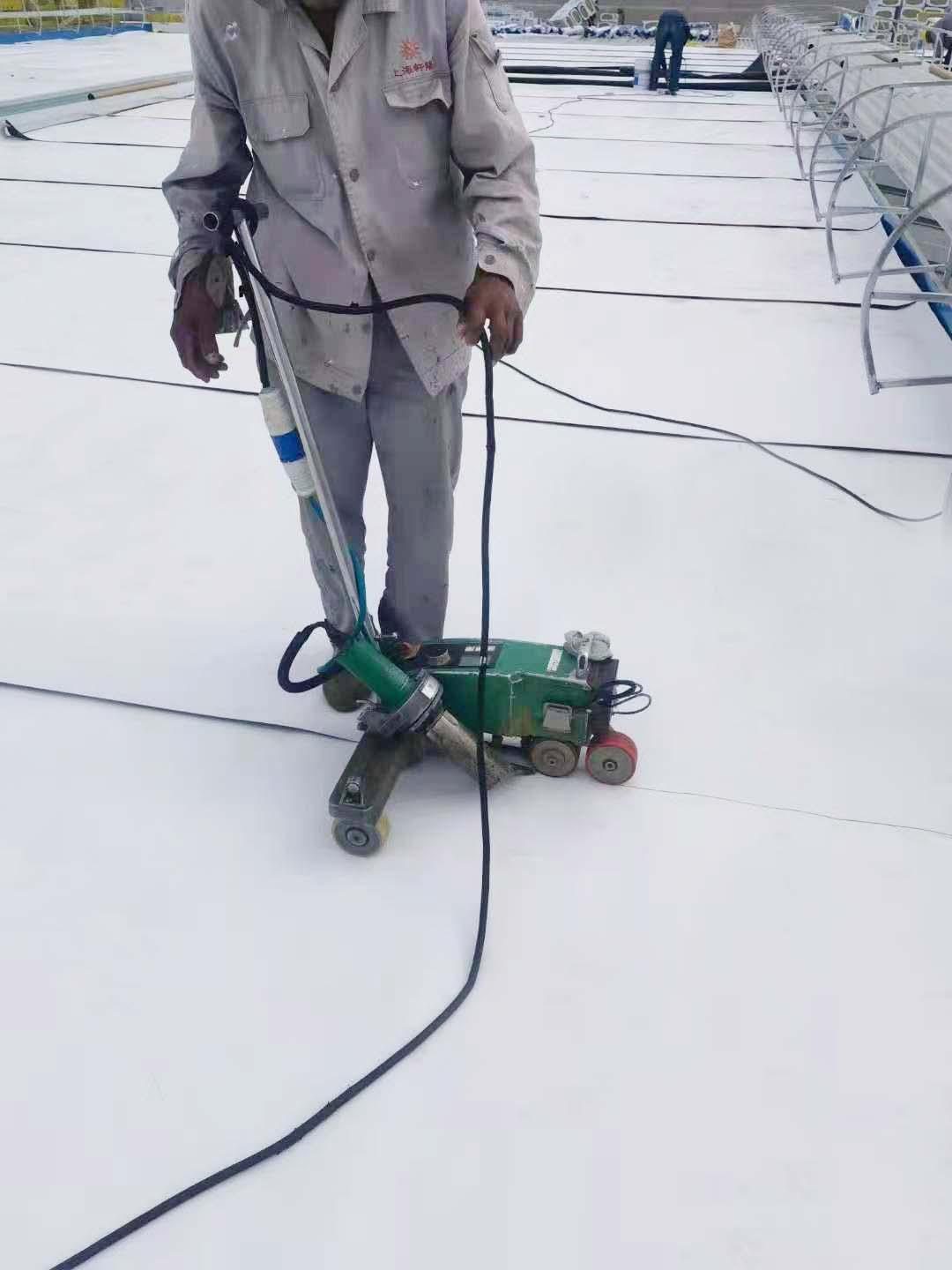 貴陽綜合保稅區(qū)產(chǎn)業(yè)基地標(biāo)準(zhǔn)廠房(一期)建設(shè)項(xiàng)目規(guī)劃用地面積約396666.67平方米。 歐西憑借優(yōu)質(zhì)的產(chǎn)品和系統(tǒng)服務(wù),參與了貴陽綜合保稅區(qū)廠房的防水工程。該項(xiàng)目采用歐西盾·TPO防水卷材(1.5mm、P型)、材料面積約為10萬㎡。 產(chǎn)品采用Catalloy工藝,由乙烯、丙烯、丁烯共聚生成的顆粒為基料,添加抗氧劑、光穩(wěn)定劑等助劑,通過擠出工藝制成的新型防水卷材。卷材不含任何增塑劑和其他有害物質(zhì),屬于綠色環(huán)保的防水卷材,并具有抗老化、拉伸強(qiáng)度高,施工方便、無污染等綜合特點(diǎn)。既能有效解決既有建筑屋面滲漏隱患,降低屋面溫度及室內(nèi)能耗,又能大幅延長原有金屬屋面使用壽命。 貴陽保稅區(qū)標(biāo)準(zhǔn)廠房—?dú)W西盾·TPO防水卷材施工現(xiàn)場