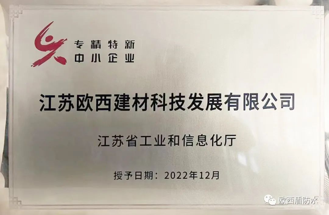 此次獲評為江蘇省專精特新“小巨人”企業(yè),是對歐西盾防水發(fā)展成果的重要肯定,有利于進(jìn)一步提升歐西盾防水的行業(yè)地位和市場競爭力。未來,歐西盾防水將繼續(xù)秉承專精特新“小巨人”企業(yè)的專業(yè)化、精細(xì)化、特色化、新穎化精神,勇立潮頭、勤修內(nèi)功,為國內(nèi)防水行業(yè)的高質(zhì)量發(fā)展提供歐西盾動能。