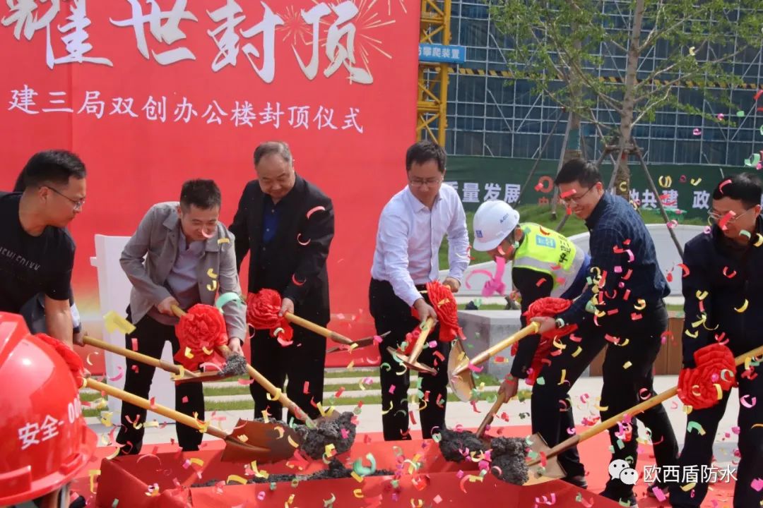 4月27日,由江蘇歐西盾防水工程技術(shù)有限公司參建的中電光谷洪澤生態(tài)經(jīng)濟示范園雙創(chuàng)辦公樓順利封頂,公司領(lǐng)導(dǎo)及相關(guān)項目施工負(fù)責(zé)人參加了此次封頂?shù)涠Y。